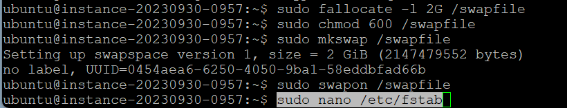 먼저 패키지 업데이트를 쭉 확인한 다음, 부족한 메모리를 위해 Swap 메모리를 설정합니다.