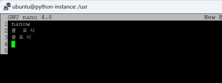 나노에서는 alt+shift+3을 같이 누르면 줄표시가 됩니다. 편집할때 줄 확인이 필요한 경우 잘 사용하시기 바랍니다.