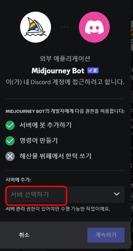그리고 이제 이렇게 바로 사용할 수 있으나, 서버에 사용자가 많아서 개인 서버를 생성한 다음 사용하는게 편리합니다.