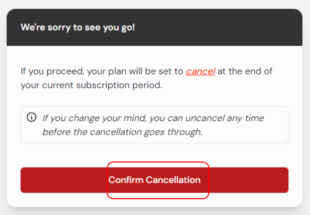 이 후 Confirm Cancellation을 통해서 구독을 해지하면 되는데요.
