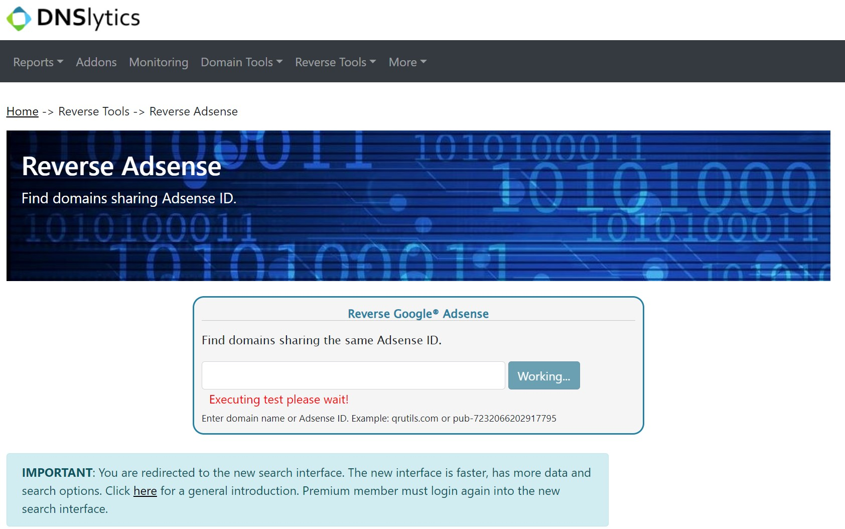 Reverse Adsense ID - Find domains sharing the same Adsense ID