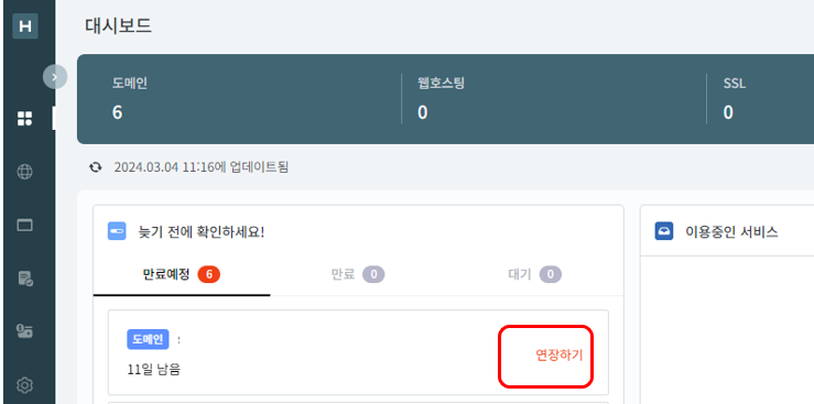 호스팅 케이알 도메인 연장