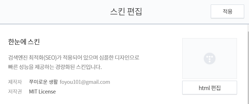 그리고 이파일을 스킨편집 - HTML 편집 메뉴에 들어가서