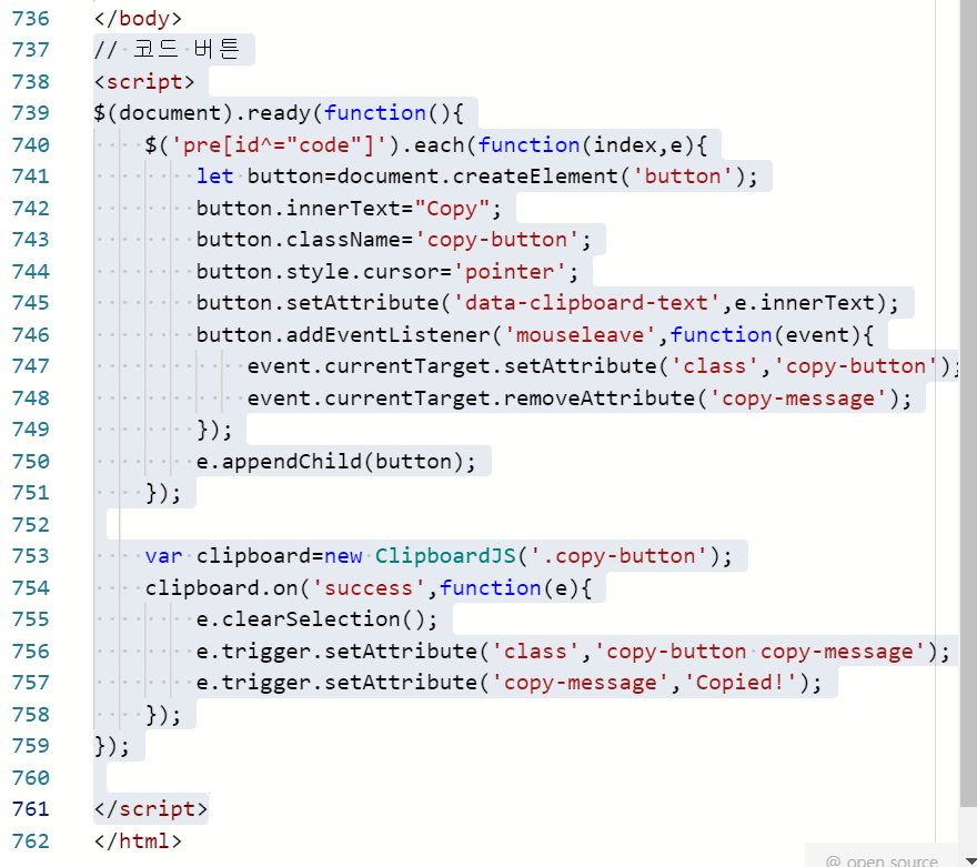 이 때 이것을 우회하기 위해서 코드에만 복사하기 버튼을 추가할 수 있는데요.