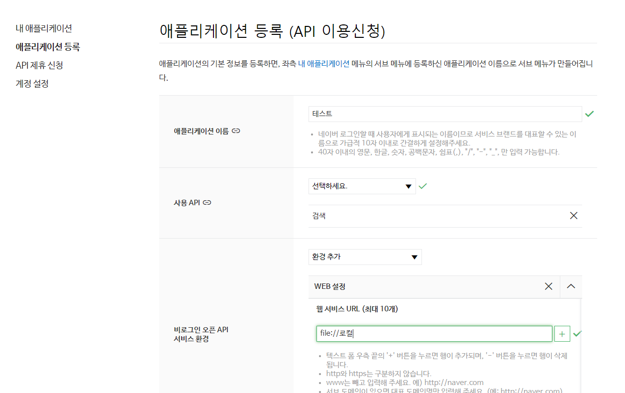 네이버 API 신청하기