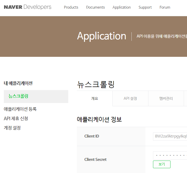 방금 발급받은 클라이언트 ID와 패스워드를 저장해 놓습니다.