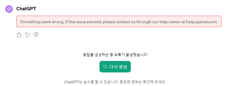 ChatGPT에 접속하고 질문을 했는데 아래와 같이 에러가 발생하는 경우가 있는데요.