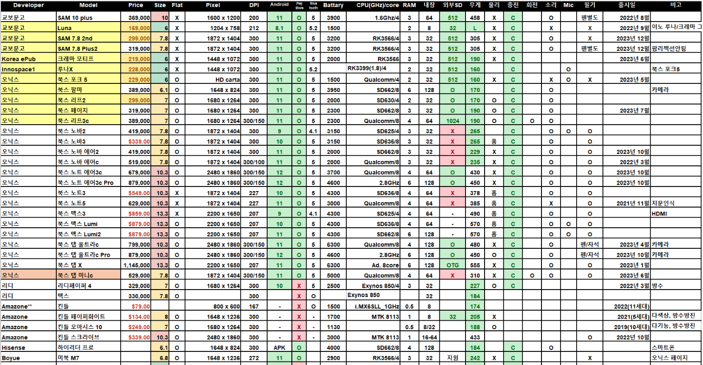 이렇게 특화된 단말기가 아니라 다른 플랫폼을 사용할 수 있는 범용 이북리더기도 있는데요. 국내 시장은 작아서 많이 출시되지 않고, 최근에는 중국에서 많이 출시됩니다.