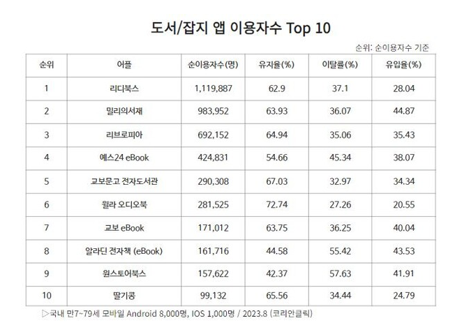 현재 국내 전자책 시장은 1위 리디북스, 2위 밀리의서재 3위 리브로피아, 4위 예스24, 5위 교보문고 순인데요.