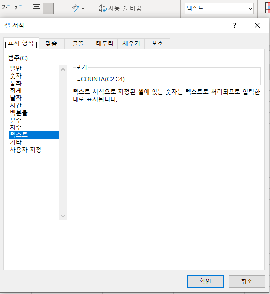 - 시트 서식이 텍스트인 경우