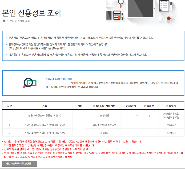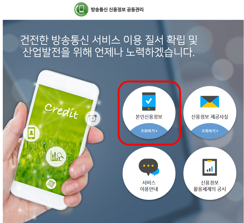 스마트폰 가입 현황은 방송통신 신용정보 공동관리 사이트에서 조회가 가능한데요.