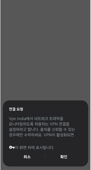 이 후 VPN에 대한 위험 경고가 뜨는데요. 확인을 눌러주시면 VPN 연결이 됩니다.