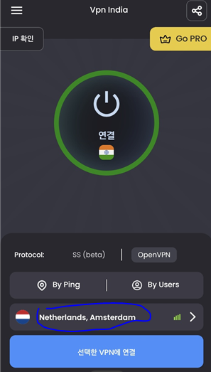 국가를 보면 위에 유료인 프로를 지나서 아래로 보면 Free라고 적힌 인도 VPN 서버를 확인할 수 있습니다.