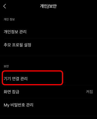 이 곳에서 기기 연결 관리 메뉴로 들어갑니다.