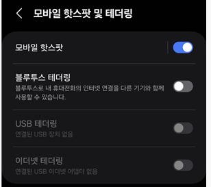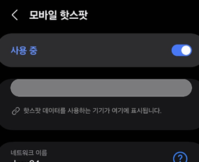 해당 메뉴에서 모바일 핫스팟을 활성화할 수 있습니다.
