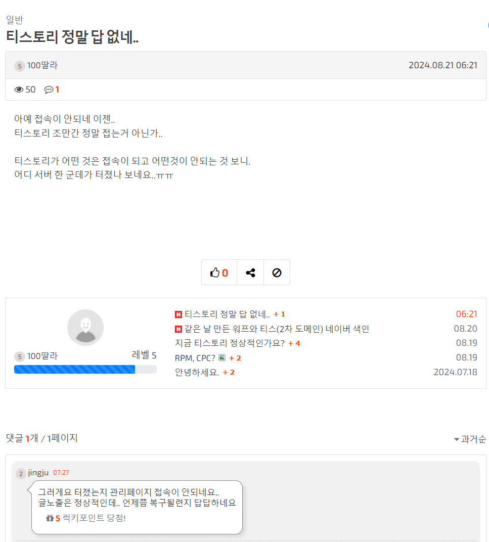 티스토리 2차 도메인 장애