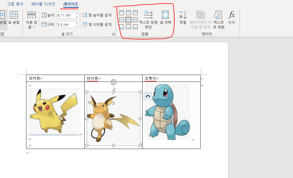 MS 워드 표 안의 그림 정렬하기