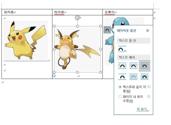 MS 워드 표 안의 그림 정렬하기