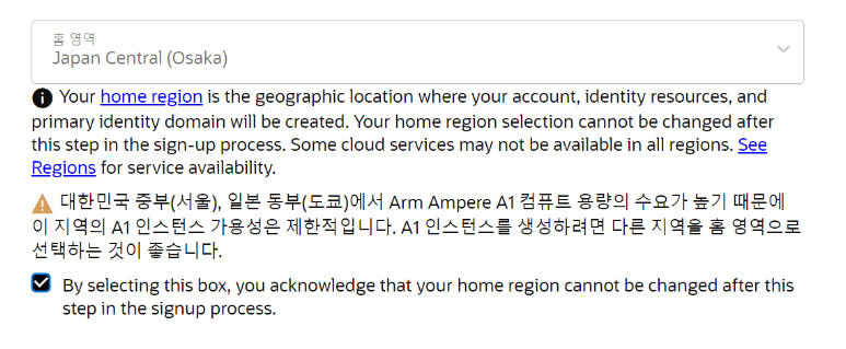 Arm 아키텍쳐를 이용해 인스턴스를 생성할 것이라면, 서울과 도쿄는 지정하지 않는편이 좋습니다.
