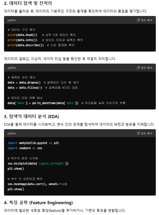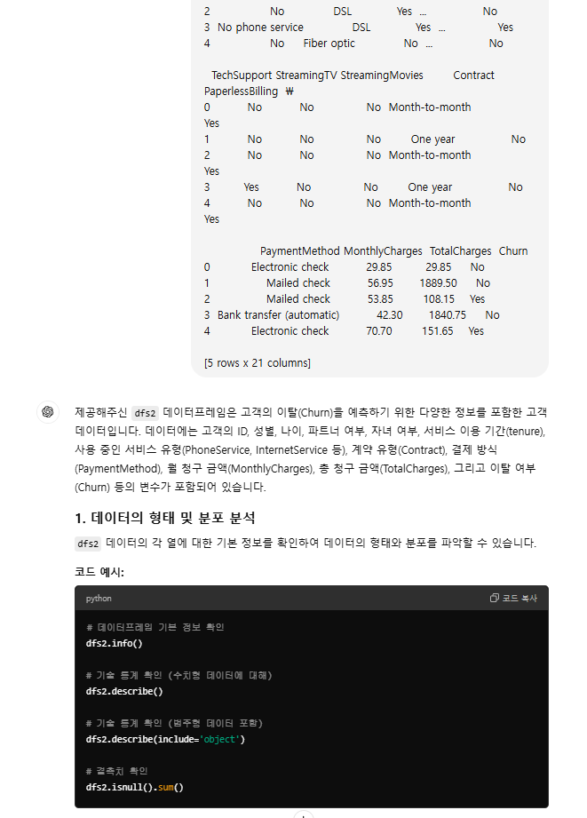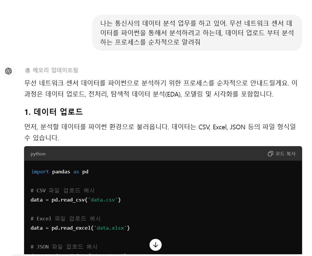 실제로 앞서 알아본 데이터 처리 과정을 ChatGPT가 알아서 순서대로 알려줍니다.
