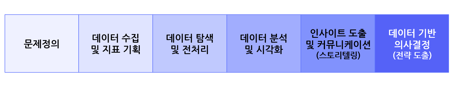 데이터 분석은 크게 아래의 6단계로 이뤄지게 되는데요.