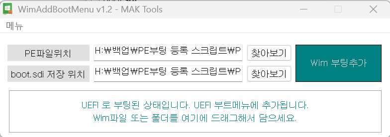 정말 직관적인 이름인데요. 윈도우 부팅 파일인 wim 파일을 boot메뉴에 추가해주는 프로그램입니다.