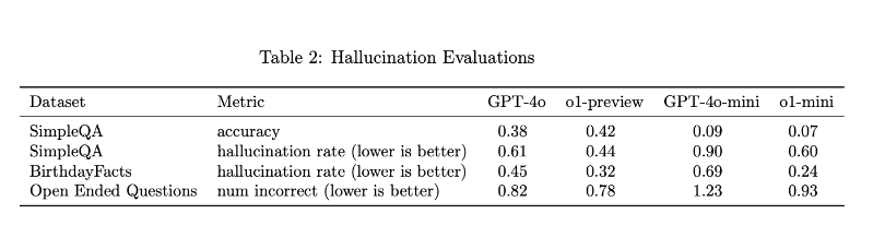 실제로 ChatGPT o1은 환각현상도 4o보다 확실히 줄어든 것을 확인할 수 있습니다.