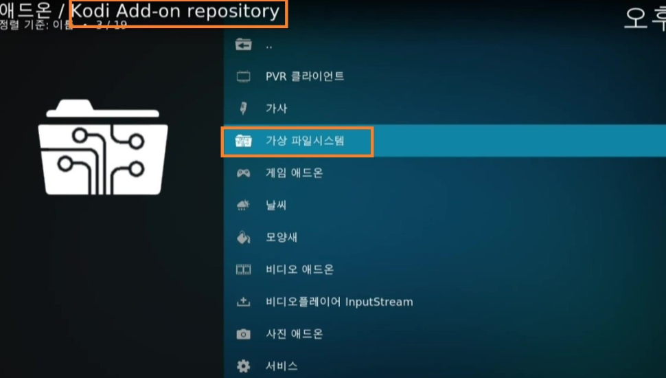 KODI에서 SFTP를 사용하기 위해서는 가상 파일 시스템에서 sftp support를 설치해줘야 합니다.