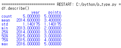 df.describe()를 통해서 간단한 통계치를 확인할 수 있구요.