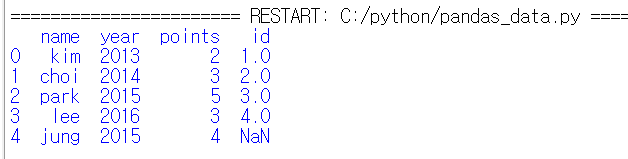 data = {'name': ['kim', 'choi', 'park', 'lee', 'jung'],