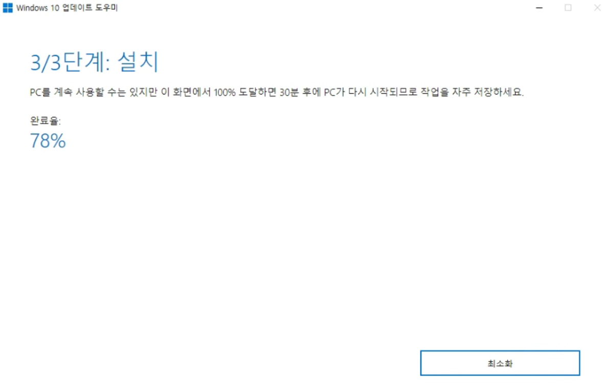 윈도우 업데이트는 정말 오랫동안 안하셨다면 꽤 오래 걸릴 수 있으니, 전원을 중간에 끄지 않도록 주의하셔야 합니다.