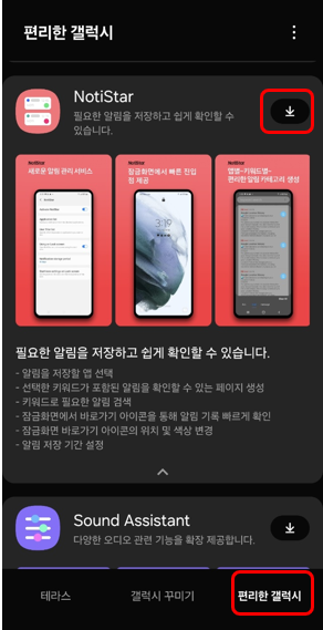 그리고 설치가 끝나면 굿락을 실행하다 하단에 편리한 갤럭시를 선택합니다. 그리고 Notistar를 설치해 줍니다.