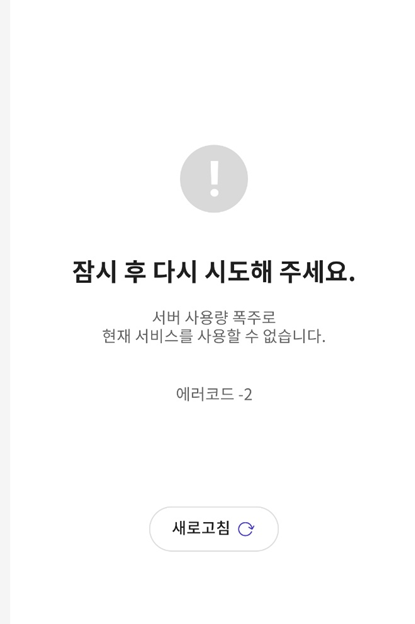 아래와 같이 잠시 후 다시 시도해 주세요. 라는 에러코드가 발생하는데요.