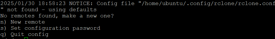 그리고 최초 설치를 위해서 rclone config를 입력해 줍니다.