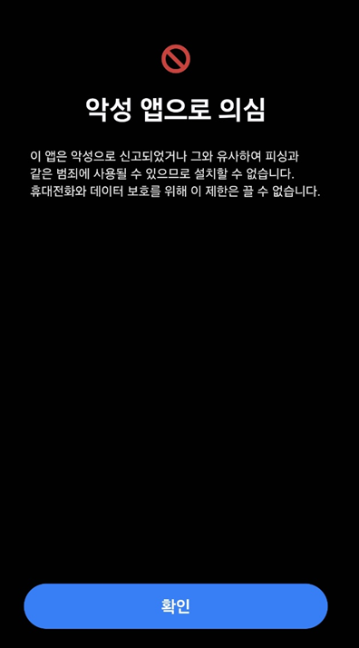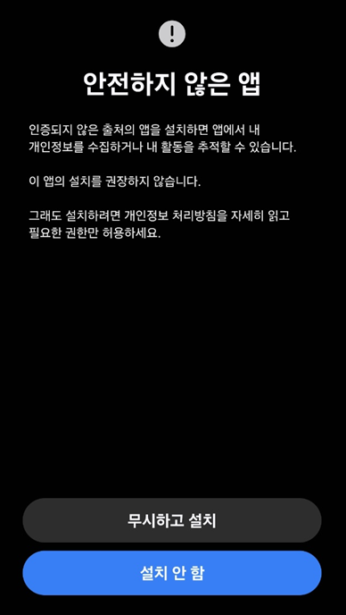 삼성 갤럭시를 사용하다보면 아래처럼 악성 앱으로 의심 된다는 메시지와 함께 앱이 설치가 안되는 경우가 있습니다. 최근 사전예약을 통해 갤럭시 S25를 받아서 앱을 다운로드 받아 새로 설치하는 과정에서 발생하여 해결방법을 기록으로 남겨둡니다.