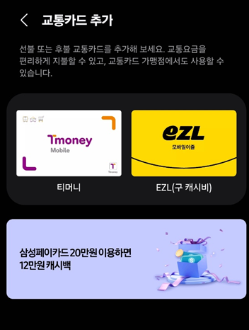기본적으로 삼성 월렛이 애플페이와 차별화 되는 포인트 중 하나는 교통카드가 된다는 것인데요.