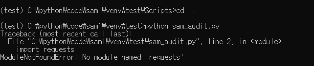 python sam_audit.py를 통해서 실행하면서 필요한 패키지만 하나씩 설치 해줍니다.