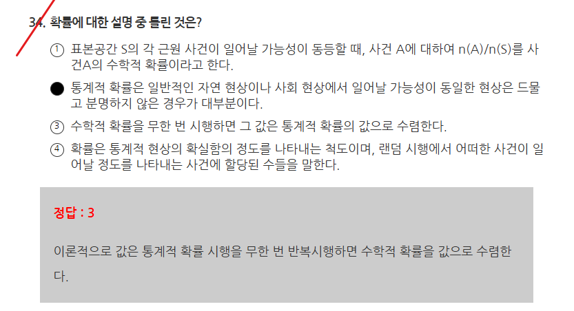 이론적으로 무한번 시행하면 시행하면 수학적 확률로 수렴