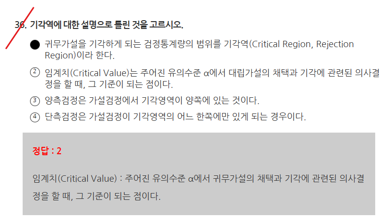 임계치 : 유의수준 a에서 귀무가설의 채택과 기각에 관련