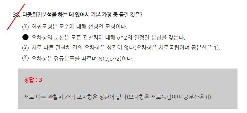 다중회귀분석시 오차항은 상관이 없다 공분산은 0
