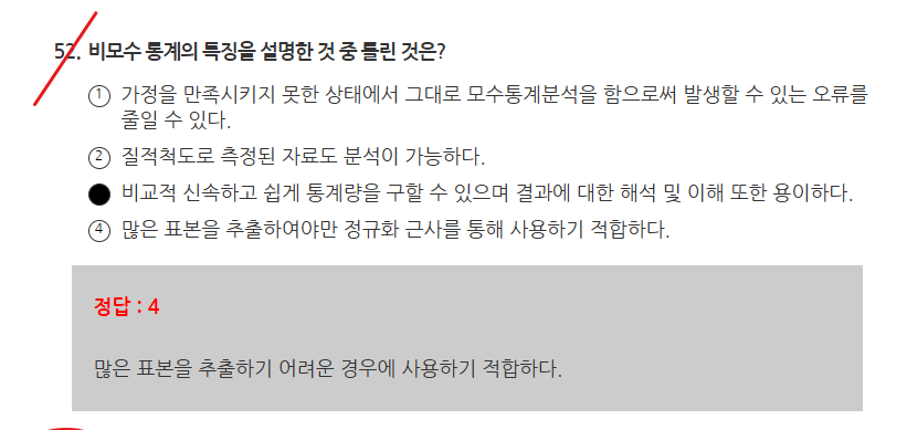 비모수 많은 표본을 추출하기 어려운 경우 사용
