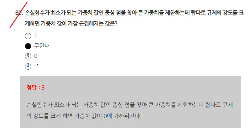 손실함수 최소가 되는 가중치 값인 중심점을 찾아 큰 가중치를 제한하는데 람다로 규제의 강도를 강하게 하면 가중치 값이 0에 가까웢ㅁ