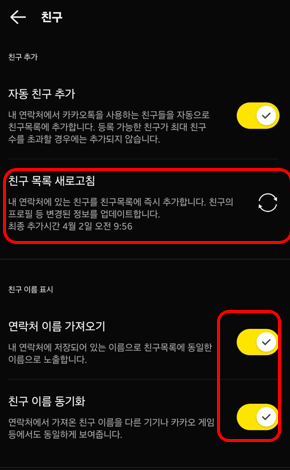 그렇기 때문에 친구 목록 동기화를 통해서 동기화하고 사용하시기 바랍니다.