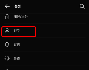 그리고 친구 메뉴로 들어갑니다.