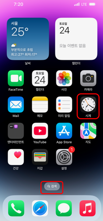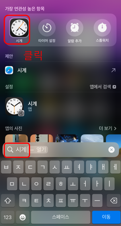 검색에서 시계를 검색해서 상단에 시계가 나오면 클릭해줍니다.