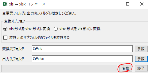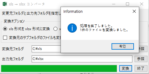 실행하고 위에서 xls 폴더 지정하시고, 아래에 xlsx폴더를 지정해주시고 나서 실행 버튼 앞에 있는 붉은색을 클릭하시면 자동으로 실행됩니다.