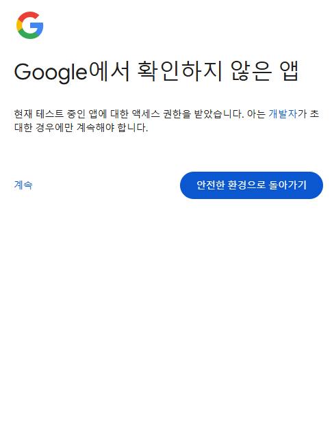 테스트 계정에 본인 계정을 추가해주셔야 넘어갑니다.