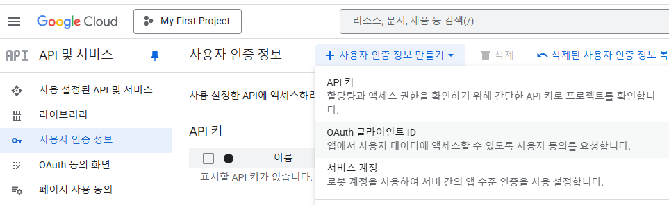 승인된 리디렉션 URI를 넣어주어야 합니다.
