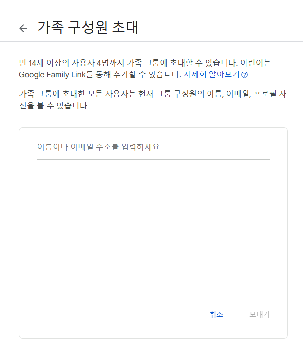 위의 사이트에서 가족 구성원을 초대할 수 있습니다.