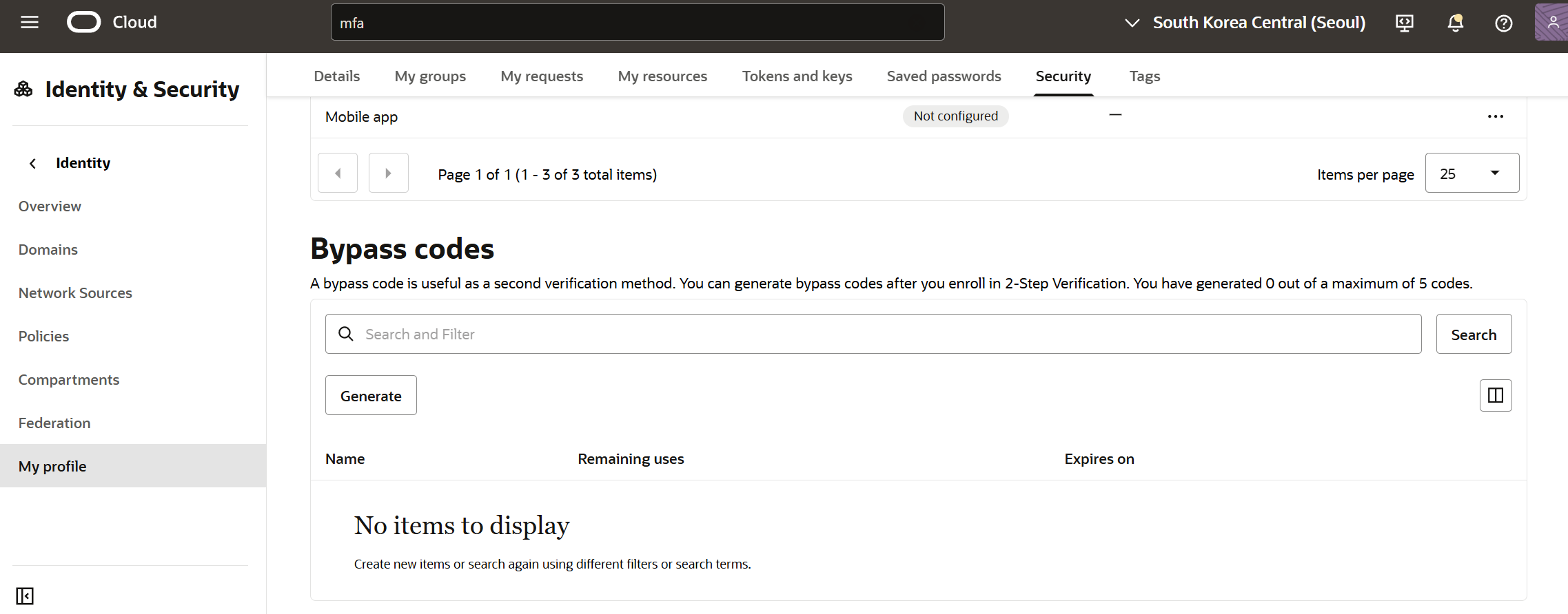 오라클 클라우드에서 2FA 설정을 해놔야 하는데요.